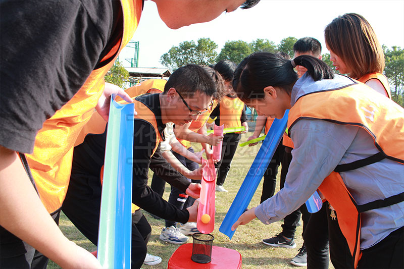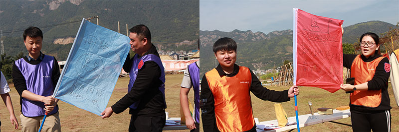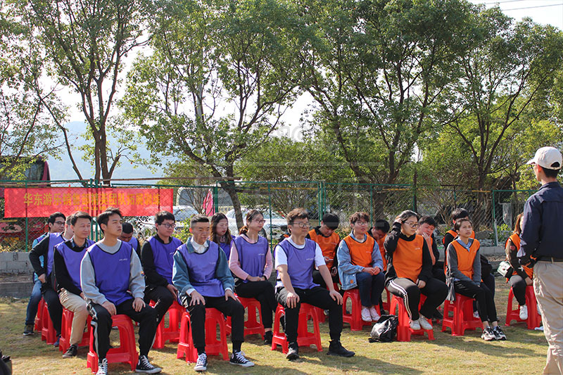 为了更好的体现团队的凝聚力和团队协作能力,做了简单的热身后,便对团队成员进行了分组,通过各个队员的齐心协力、各抒己见最终两个团队确立了“帆船的”与“同路人队”。