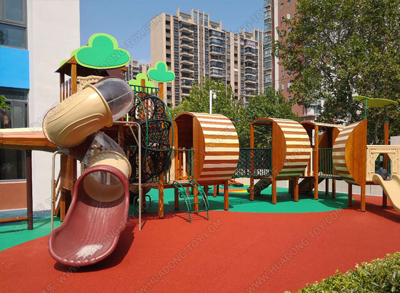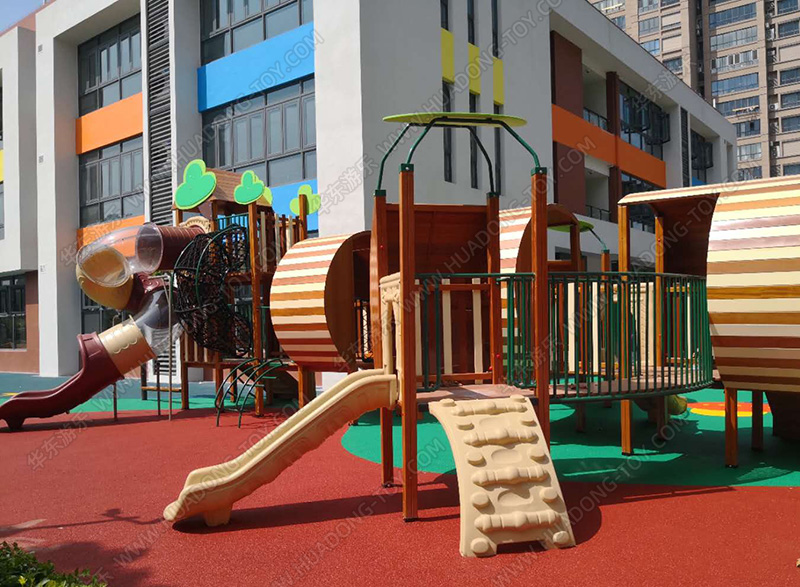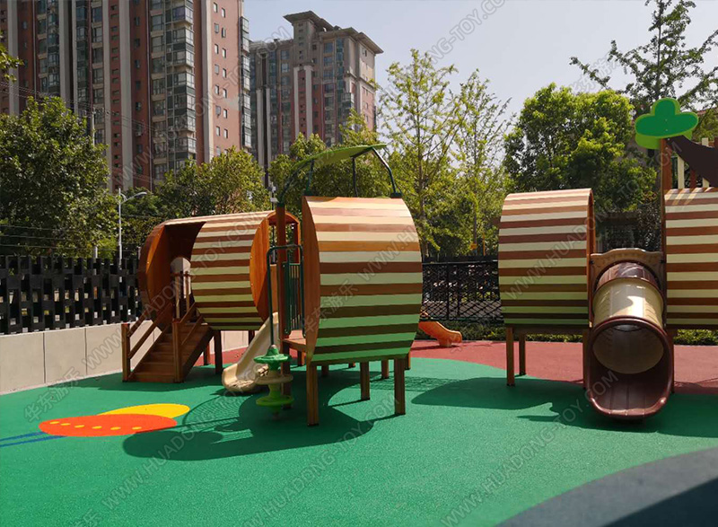 • 碧桂园木制非标项目案例采用木制非标为设计模型,沿用乡村风车设计的具有复古模式的游乐项目,整个项目具有秋千组合,木制拓展、木制跷跷板、爬网等游乐设备,丰富了整个项目的功能和小朋友的健康发展要求。