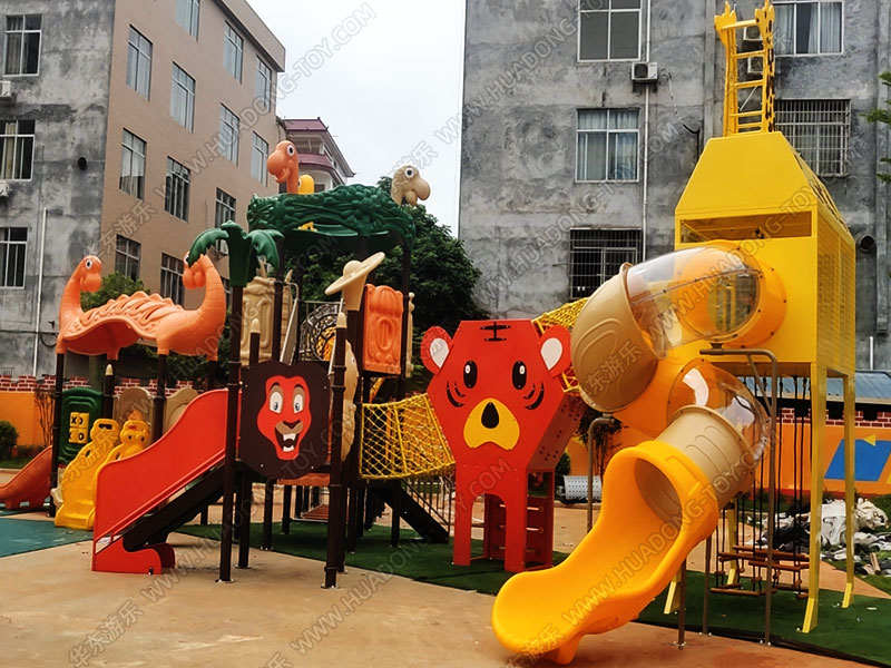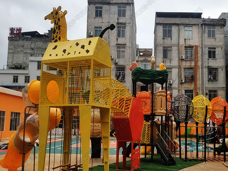 • 该幼儿园项目采用的是乐发游乐自主研发的动物世界系列大型滑梯组合,该滑梯以可爱的小动物为设计模型,让小朋友可以和谐的与小动物相处,教育他们能够保护小动物,爱护小动物。
