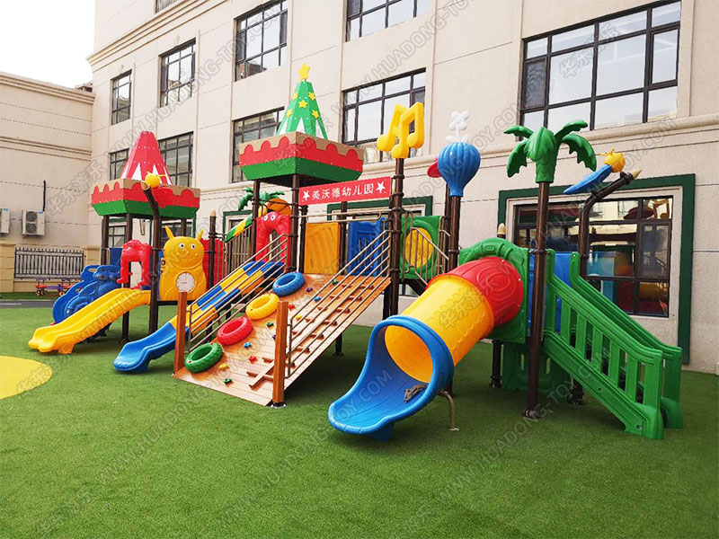 长春美沃德幼儿园项目主体采用的是乐发游乐自助研发设计的动物园系列滑梯组合,该滑梯具有色彩靓丽,款式新颖,深受小朋友们的喜爱,设计了攀岩板、滑梯等功能。