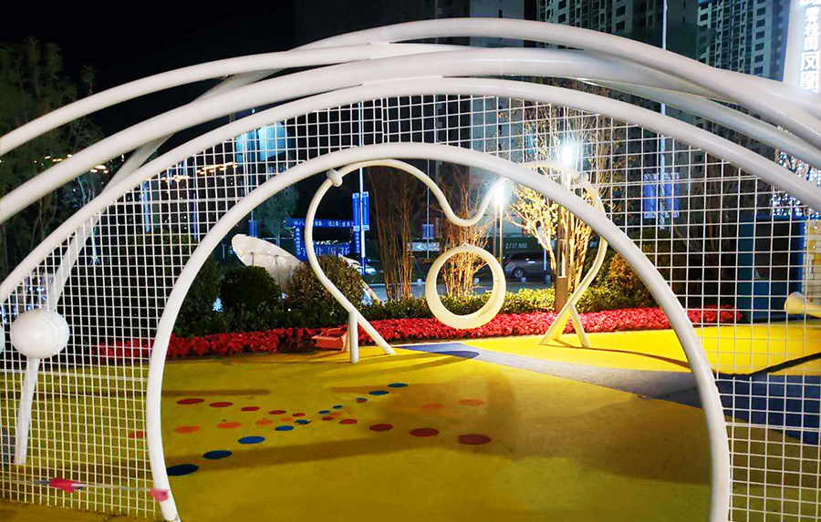碧桂园风情家园非标定制案例采用的是乐发游乐自助研发、设计和生产的游乐设备,以2020世界遭受的新冠病毒作为主体设计元素,展示了人类经过不断的携手共进,不断的努力,最终战胜了这场无硝烟的战争。