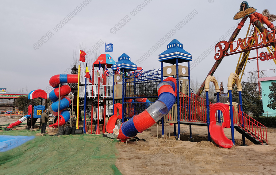 河南省三门峡市星河乐园是一个综合像游乐园,该项目采用的是乐发游乐生产的大型欧韩风格的组合滑梯,具有攀爬、爬网、滑梯、钻洞、网绳、吊桥等功能,设计完美、质量优越,深受小朋友们的喜爱。