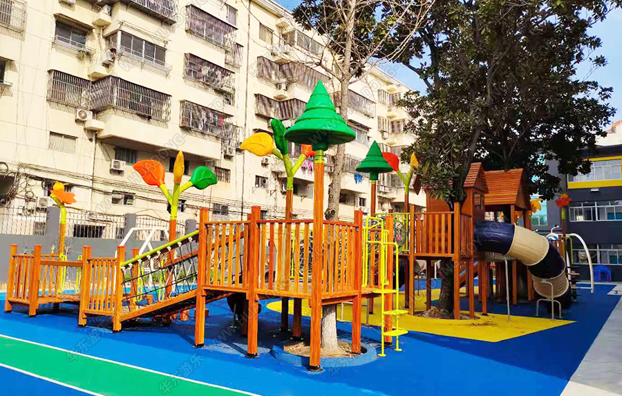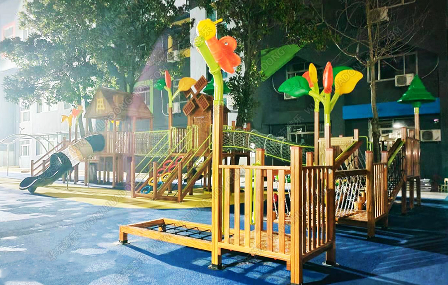 江苏省泰兴市育红幼儿园城西分校是经教育部批准的优秀幼儿园,该幼儿园此次采用的是乐发游乐生产的木制系列产品,具有爬网、攀爬、滑梯、脚踏水车、传声筒、钻洞等游乐设施。