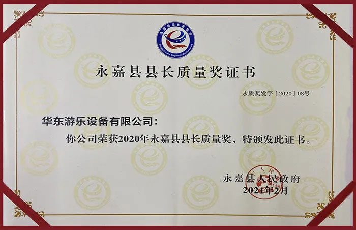2020年,对广大企业来说注定是困难的一年,作为游乐设备行业的先锋企业,乐发游乐紧紧围绕永嘉县总体经济发展为目标任务,主动适应经济发展新常态,积极应对2020年疫情期间的“复工复产”等工作,取得了显著成绩,被永嘉县人民政府评为“2020年度巨龙企业”和“县长质量奖”的荣誉。