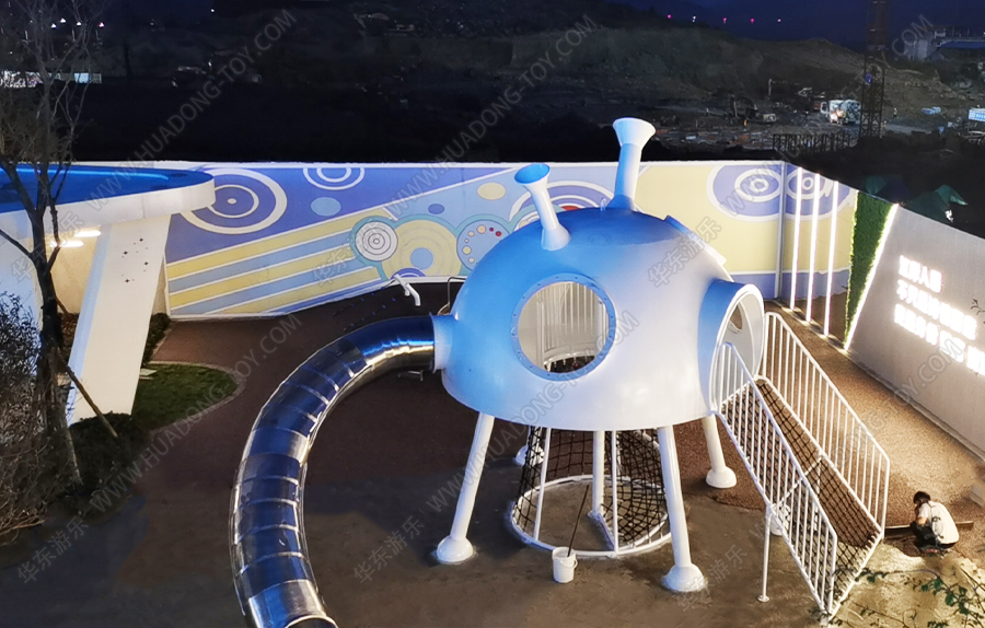 隆回县碧桂园天玺湾非标定制案例采用的是一个由乐发游乐自主研发和设计的一款造型独特,外观新颖的具有不锈钢滑桶、爬网、钻洞等功能的游乐设备,并在该游乐场设置了摇摇乐、秋千等游乐设备,为生活在该区域的小朋友提供了一个休闲,娱乐 ,健身的场所。