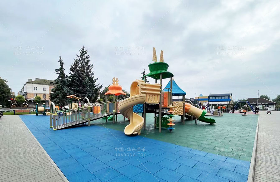 该项目选用的是乐发游乐自主研发和生产的体育系列滑梯,在该游乐场中有攀爬岩、儿童秋千、健身器、儿童旋转椅等游乐设备。