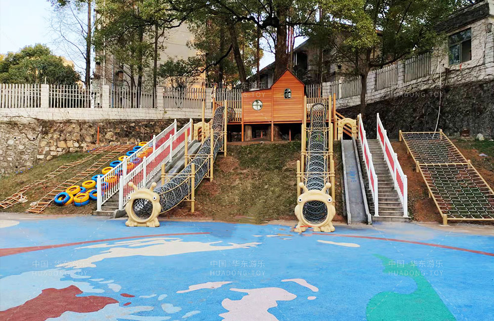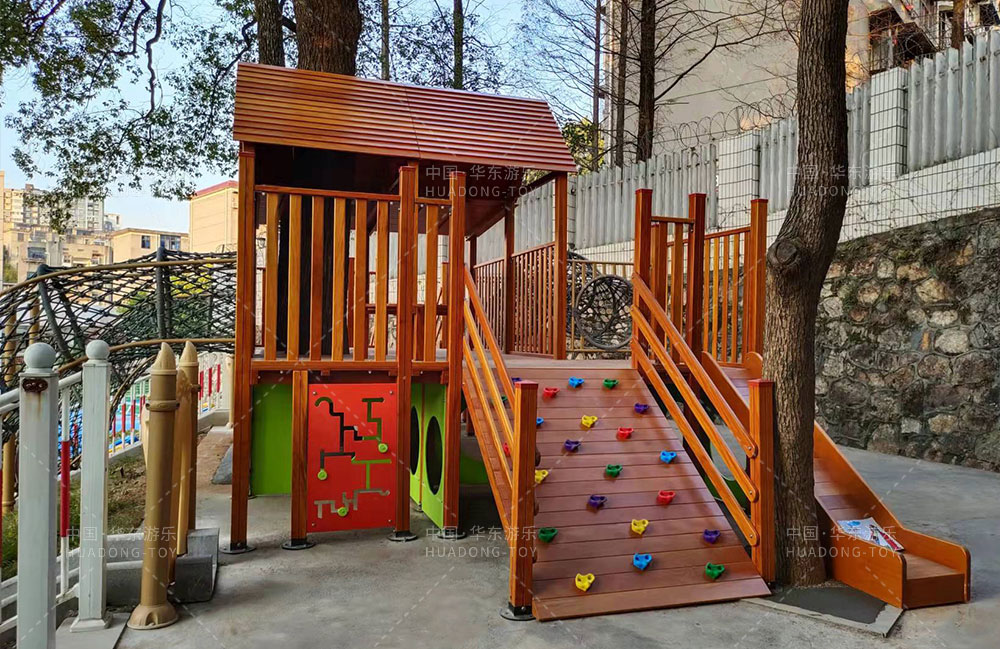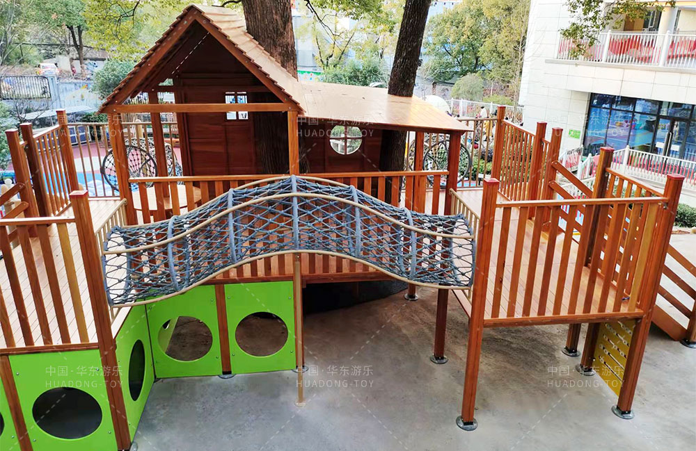 湖南省株洲市株机幼儿园是一家专业的学前教育培训机构,此次项目采用的是乐发游乐自主研发的木制非标游乐项目,整个项目设置的有木制游戏小屋,攀爬墙、攀网钻洞、轮胎攀爬等游乐设备。
