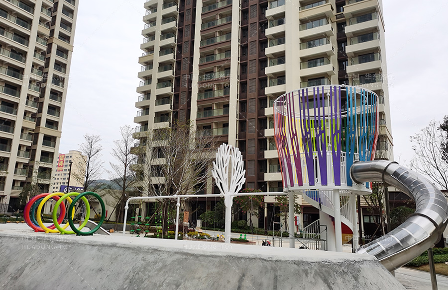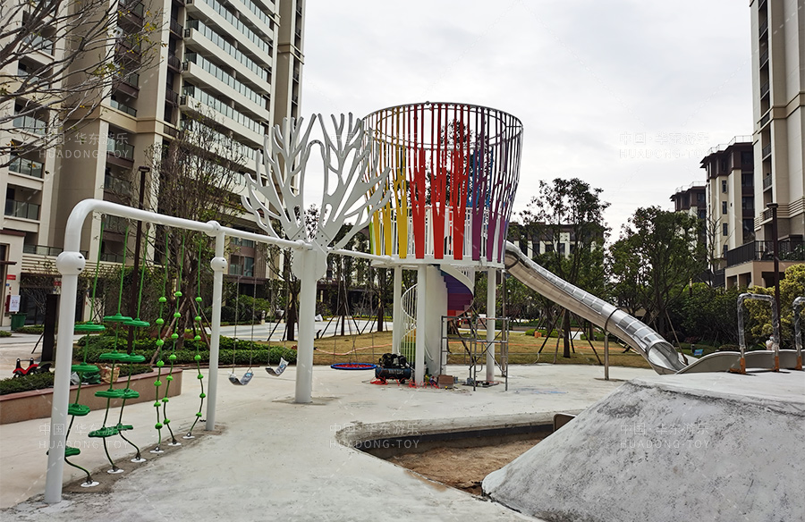 青阳二期采用是是乐发游乐非标定制的游乐设备,设计了大型的网红滑梯、小朋友喜欢的葫芦攀爬、攀爬绳和秋千组合,为生活在该小区的人们提供了一个休闲娱乐的场所,也为小朋友的健康成长提供了一个游乐场。