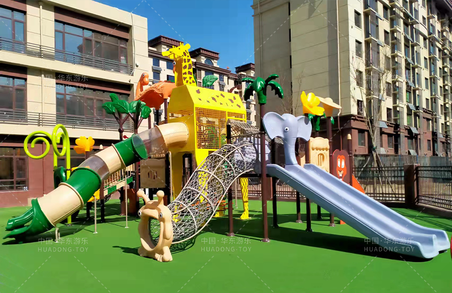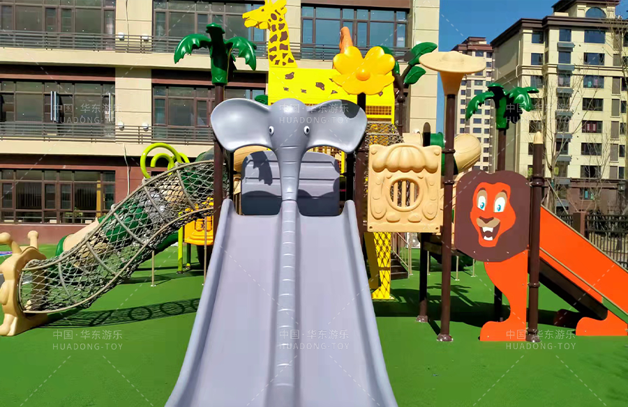 河北省唐山市京唐港开发区滨海华府幼儿园选用的是乐发游乐自主研发的动物系列滑梯、该滑梯具有攀爬、滑梯、钻洞、爬网、等功能,能够锻炼小朋友的四肢臂力,很好的让小朋友在玩耍中健康快乐的成长。