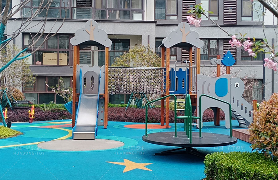 该项目选用的是乐发游乐自主研发和生产的网绳攀爬、万能健身器、小型滑梯为一体的综合性游乐园、该游乐园设计了攀爬网、摇摇乐、健身器、手推旋转椅等游乐器械,为生活在该小区的人民提供了一个休闲、娱乐的场所。