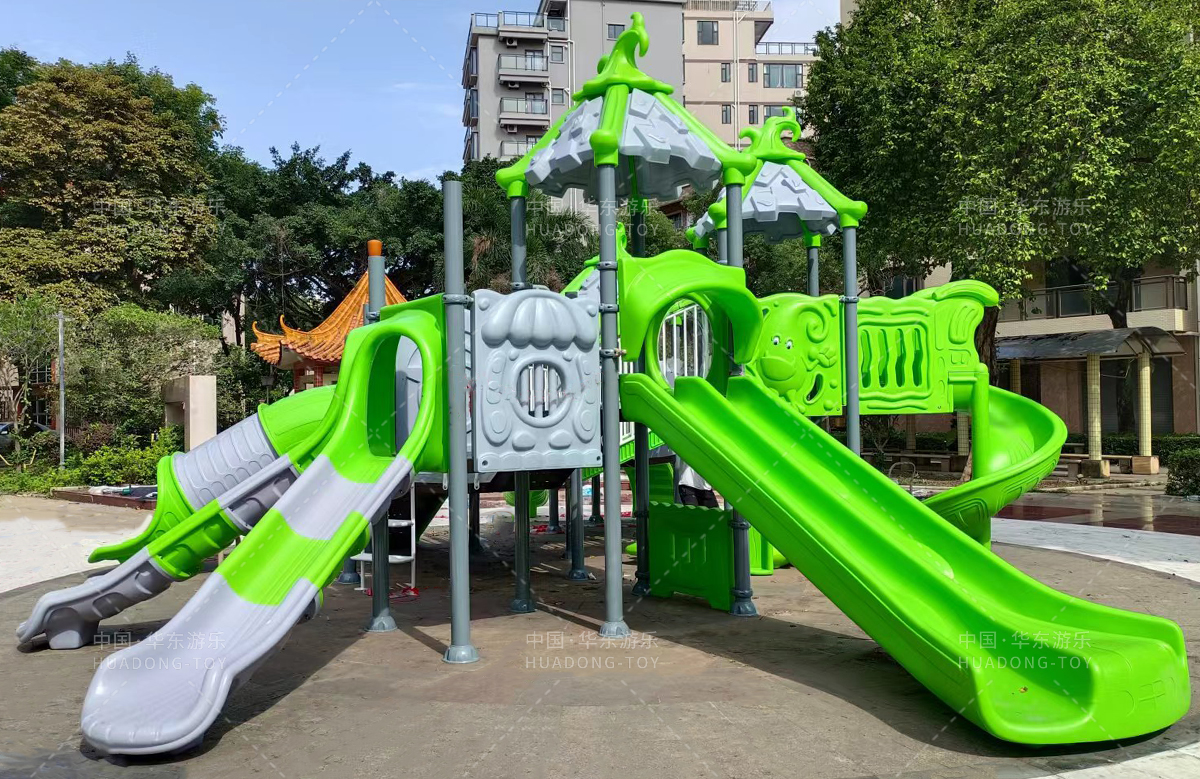 该小区选用的是乐发游乐自主研发和设计的具有攀爬、钻洞、滑梯为一体的魔法屋系列组合滑梯和动物园系列滑梯,让生活在该小区的人有一个休闲娱乐的场所。