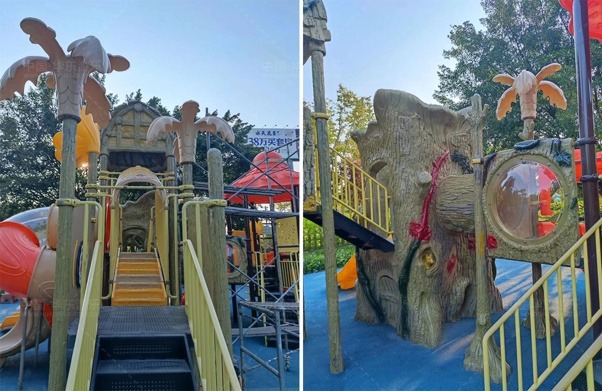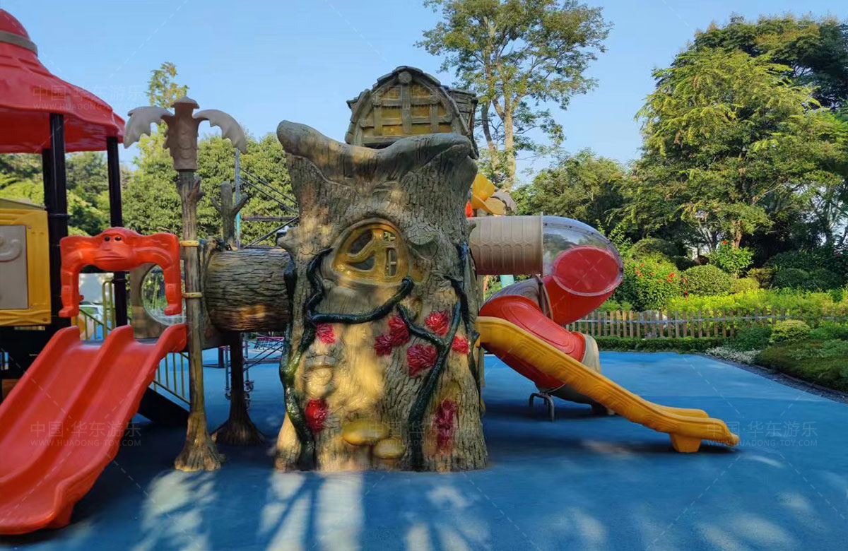 该项目选用的是远古部落系列的组合滑梯,该滑梯是乐发游乐自主研发和设计的具有功能齐全、玩法多样、使用 寿命长等特点的游乐设备。
