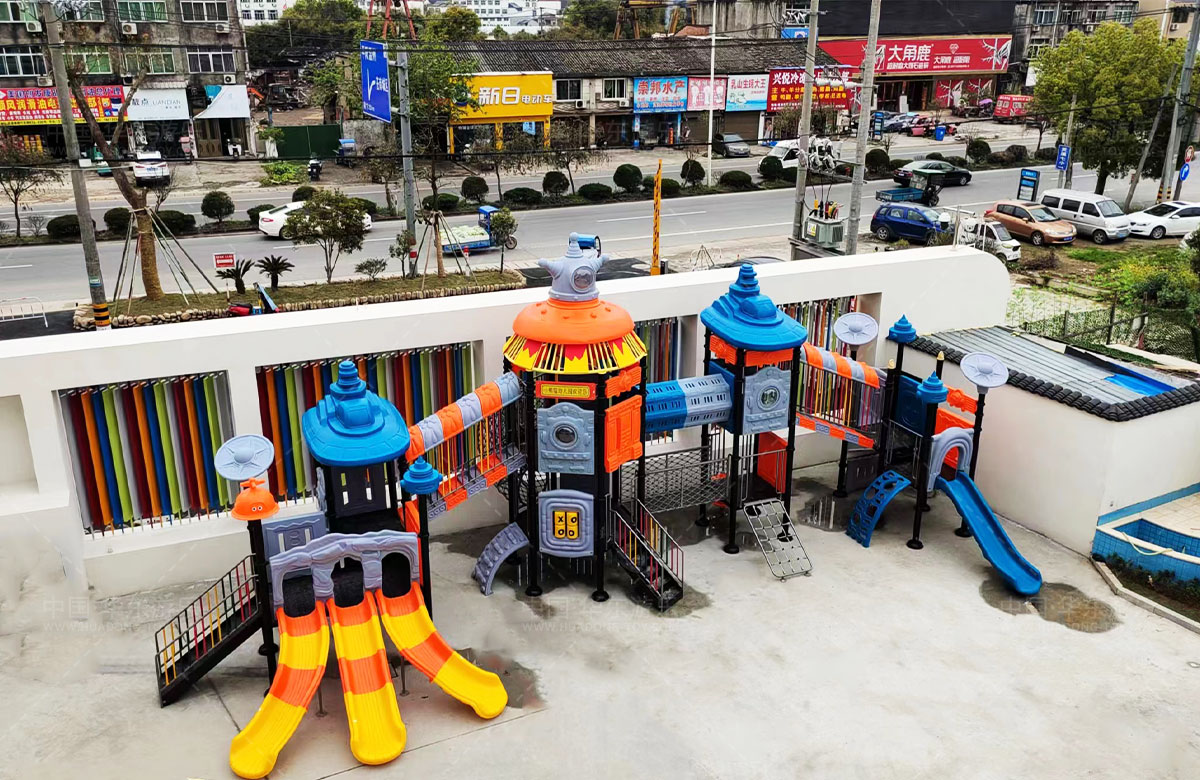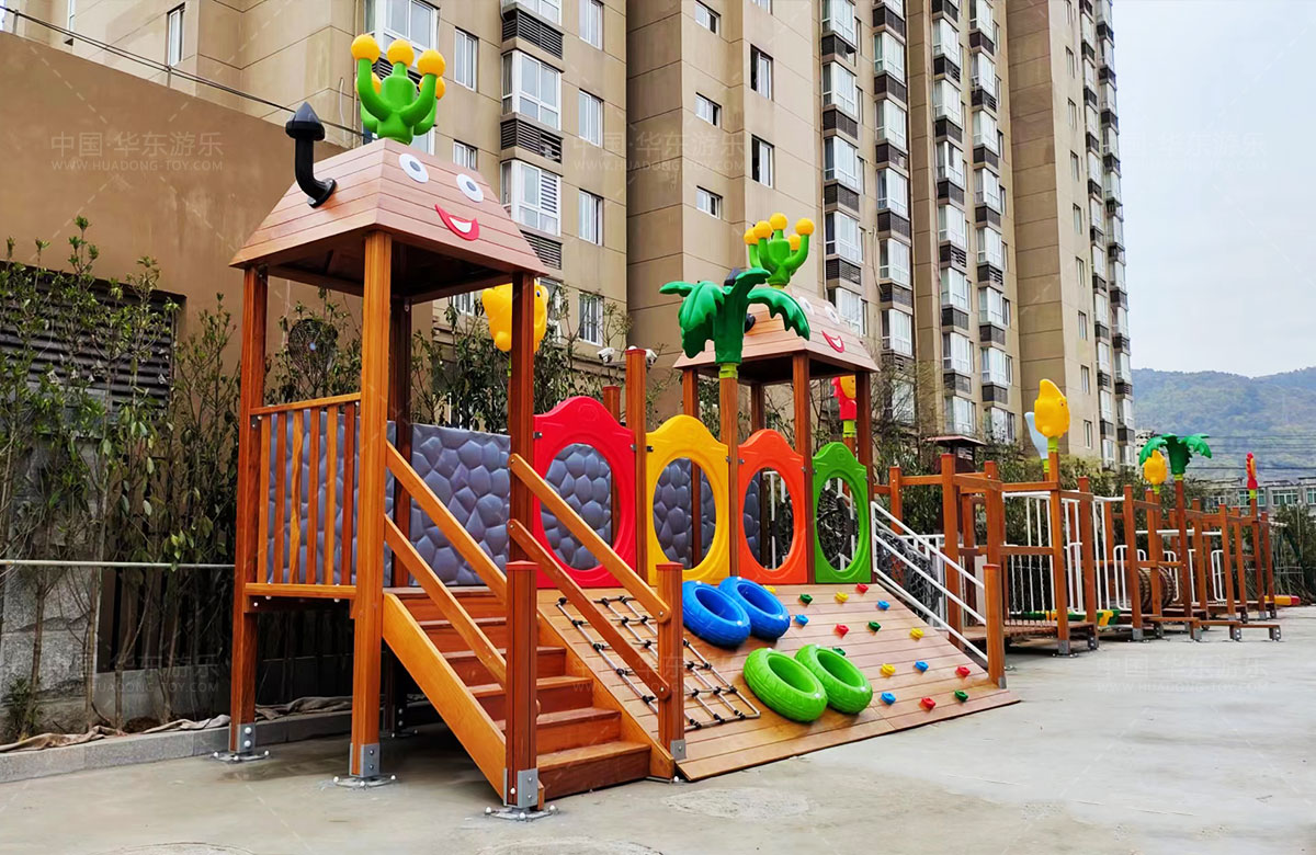 幼儿园为了更好的应对教学的和孩子们的发展需要,分别设置了由乐发游乐自助研发和设计的赛亚号系列组合滑梯、木质攀爬、木质拓展游乐设备,让小朋友在学习的同时能够更加愉快的玩耍。