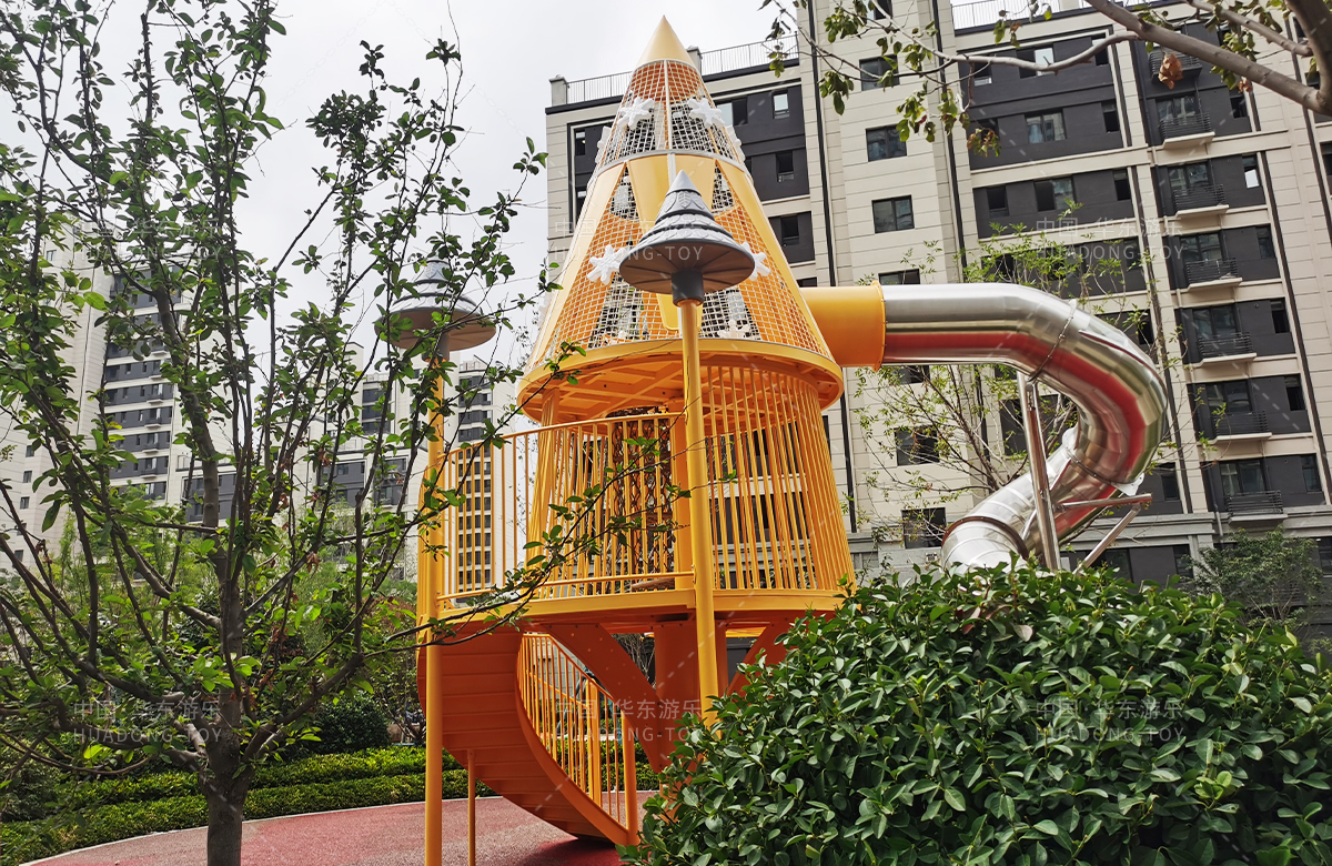 华润置地万象府选用的是乐发游乐自主研发和设计的以森林的大树为主题的非标定制游乐设备,该设备是一款具备了攀爬网、旋转走梯、旋转滑筒等功能为一体的综合性游乐设备,该游乐场的设置不仅仅为小朋友提供了一个很好的玩耍场所,也为生活在这里的人民提供了一个休闲娱乐的场所。