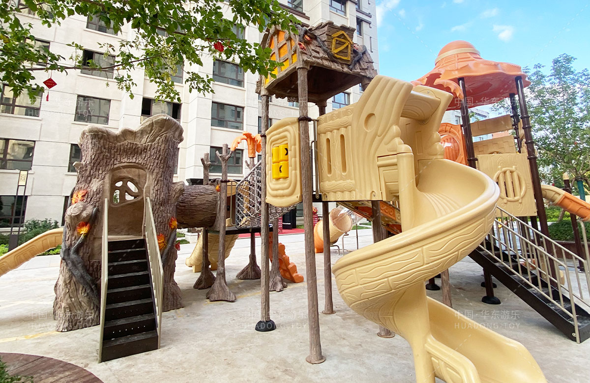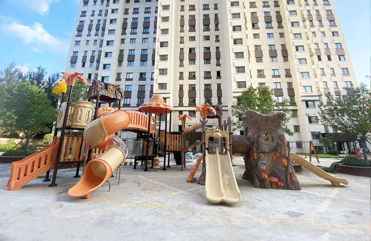 哈尔滨市南岗区学府选用的是乐发游乐自主研发和设计的远古部落系列的组合滑梯,该滑梯具有功能齐全、玩耍多样、使用寿命长等特点,除此之外还增加了儿童跷跷板、儿童秋千等儿童游乐设备,不仅仅丰富了孩子们的玩耍场所,也小区的生活增添了更多的生机与活力。