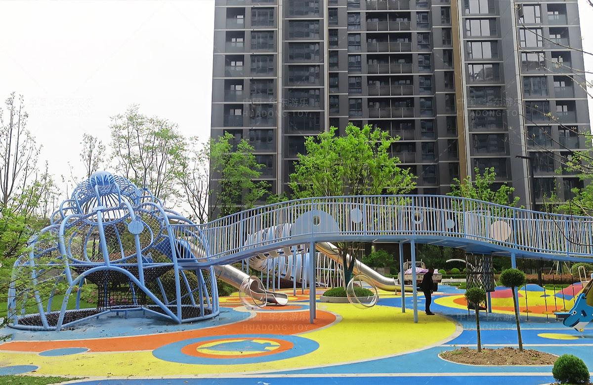 温州德信是一家高端居民小区,为了更好的提供高端的服务,该小区选用的是乐发游乐自主研发和生产的以“田螺公主”为主题的综合性游乐园,设置了孩子们喜欢的钻洞、攀爬、秋千、摇摇乐、翻翻乐、不锈钢滑梯、攀爬网等功能的游乐设备,不仅丰富了小区的生活,也为孩子们的玩耍提供了一个很好的游乐场所。