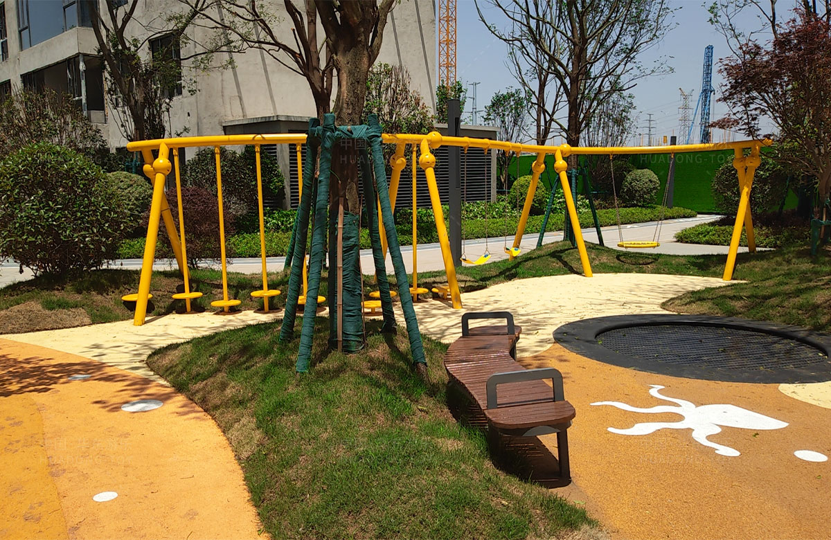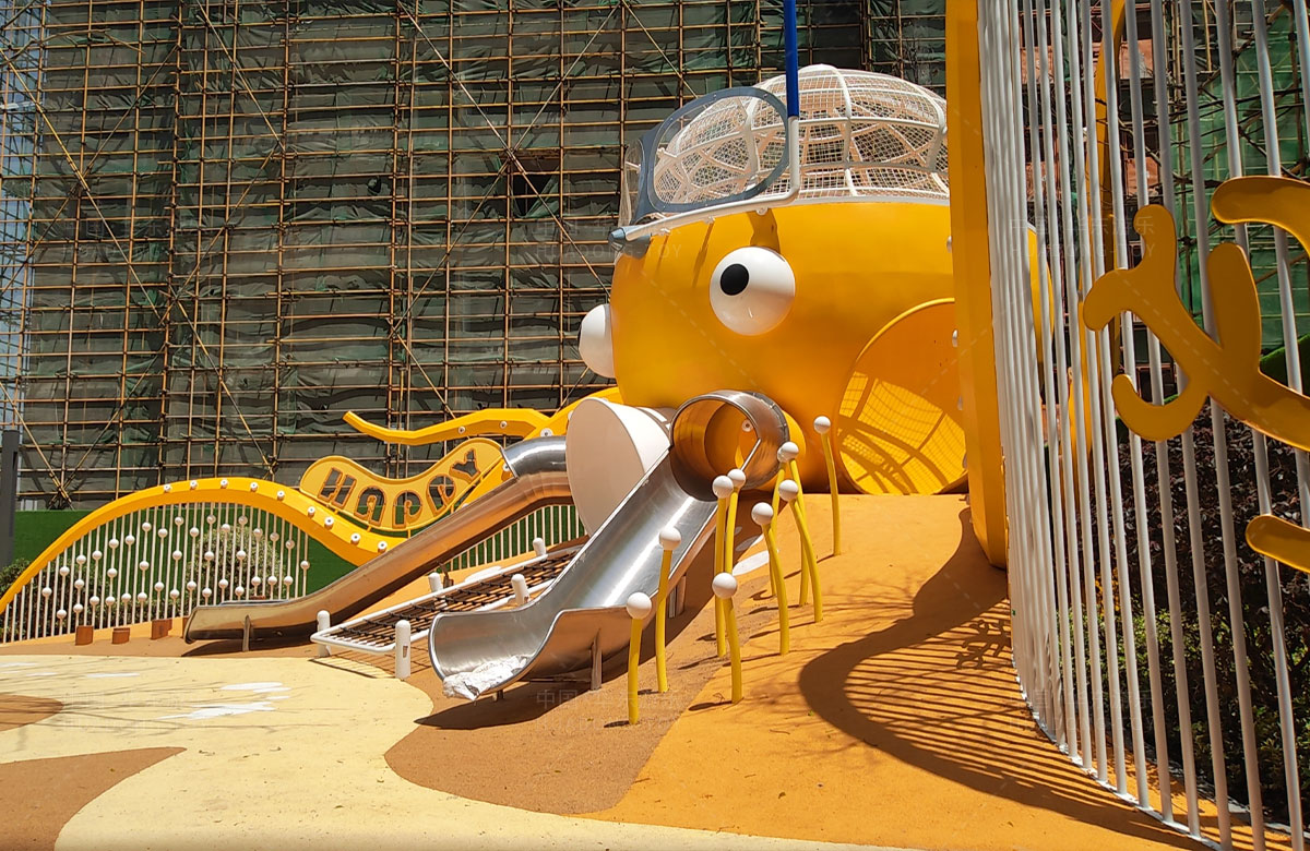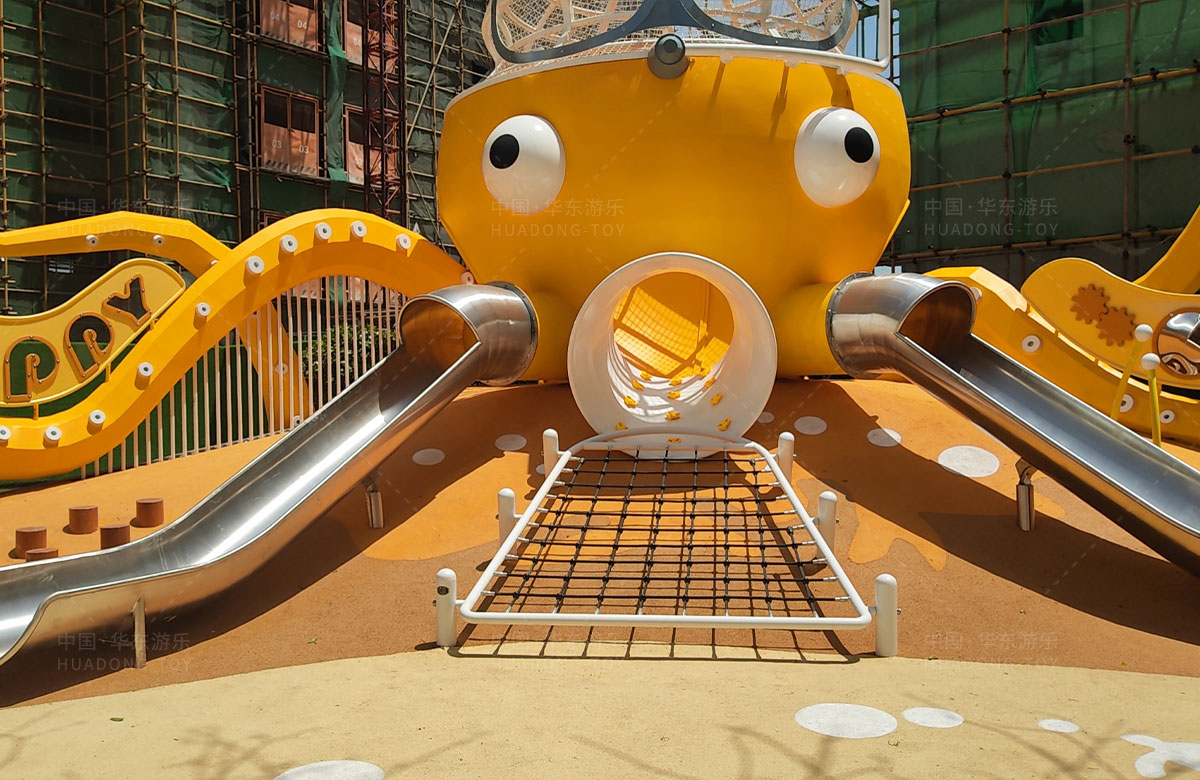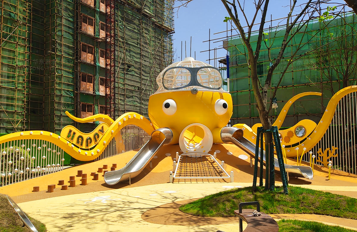 襄阳金辉优步学府此次选用的是乐发游乐自主研发和设计的以章鱼为主题的的游乐设备,该设备以生动的形象向小朋友展示了游乐设备的多姿多彩,结合各种的攀爬网、攀爬梯、不锈钢滑梯、攀爬杆、不锈钢钻洞、组合秋千,不仅仅丰富了小区的生活,同时也为生活在当地的人群提供了一个休闲、娱乐、遛娃的场所。