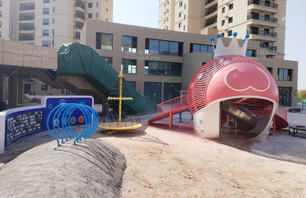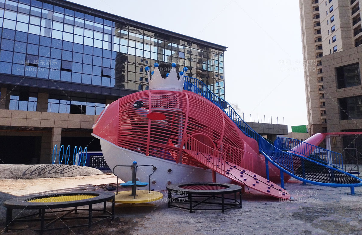 • 该项目选用的是以鲸鱼为主题的儿童游乐园,为了更好的给孩子们提供一个愉快的童年,整个游乐园除了设计具有攀爬网、旋转滑梯、攀爬墙等功能为一体的鲸鱼组合游乐设备,除此之外还设置了地蹦床、旋转椅、儿童摇摇乐等游乐设备,为生活在当地的人群提供了一个休息、娱乐、遛娃的场所。