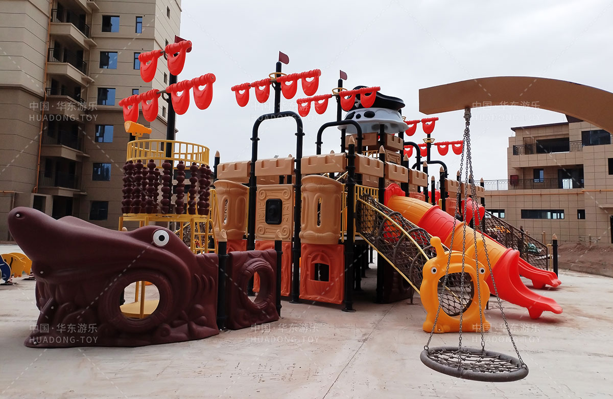 该项目选用的是乐发游乐自主研发和设计的以海盗系列为主题设计的海盗船系列组合滑梯,该滑梯具备功能齐全、颜色艳丽、使用寿命长、安全环保等特点,是一款非常受小朋友欢迎的组合滑梯,除此之外还设置了小朋友喜欢的儿童摇摇乐、秋千等游乐设备,同时还专门设计了健身区,为生活在当地的人群提供了一个休息、娱乐、遛娃的场所。