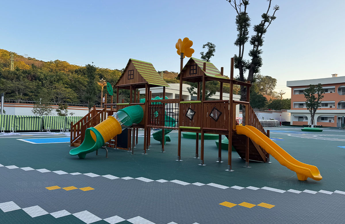 开远市凤凰幼儿园是一所专业的学前教育机构,此次选用的游乐设备是乐发游乐自主研发和设计的木质主题系列组合滑梯,该滑梯具备了攀岩墙、攀爬网、直行滑梯、旋转滑梯、直行滑桶等功能,是一款非常适合小朋友玩耍的游乐设备,该游乐设备的设置不仅仅为孩子们提供了玩耍的场所,也为老师的教学带来了帮助。