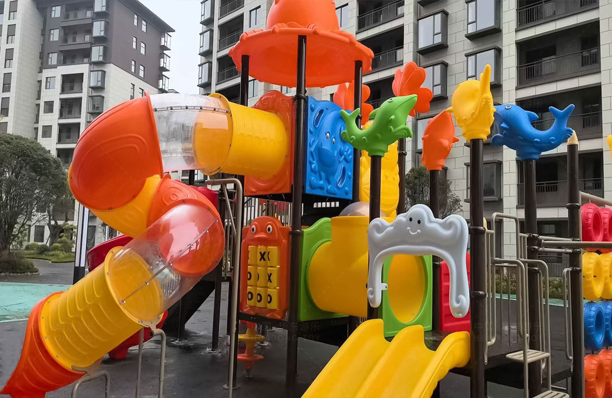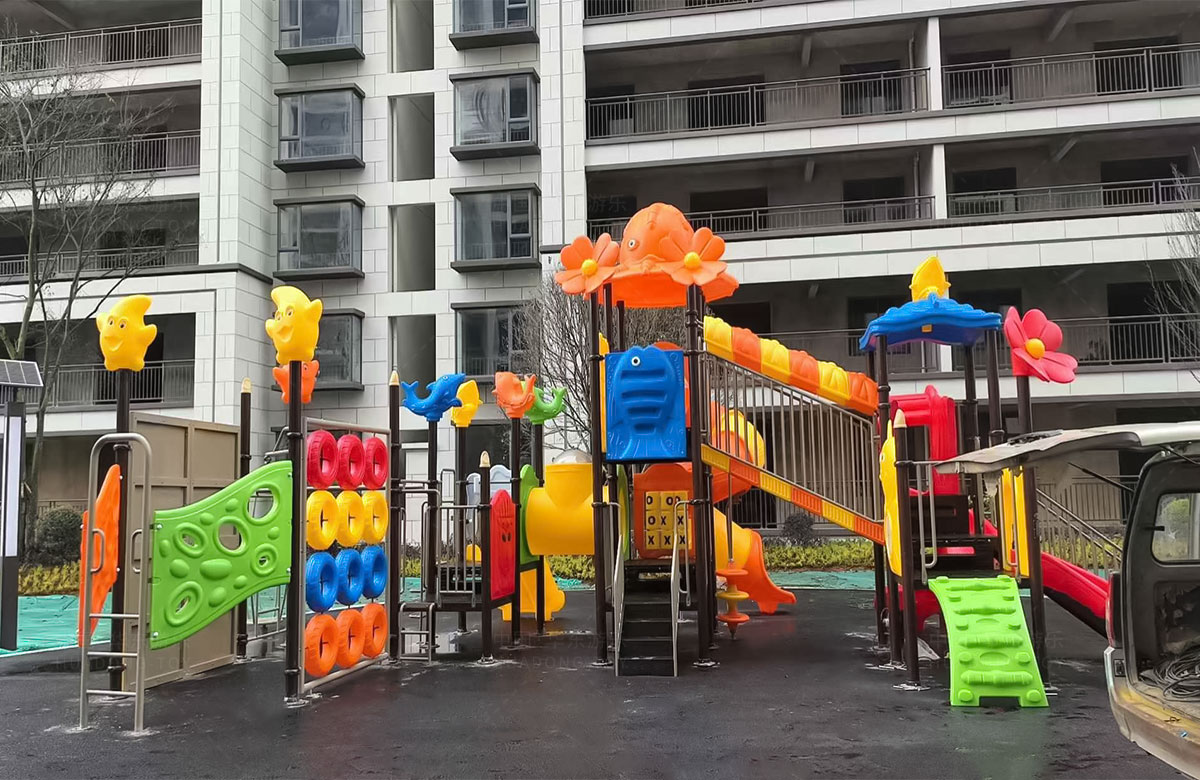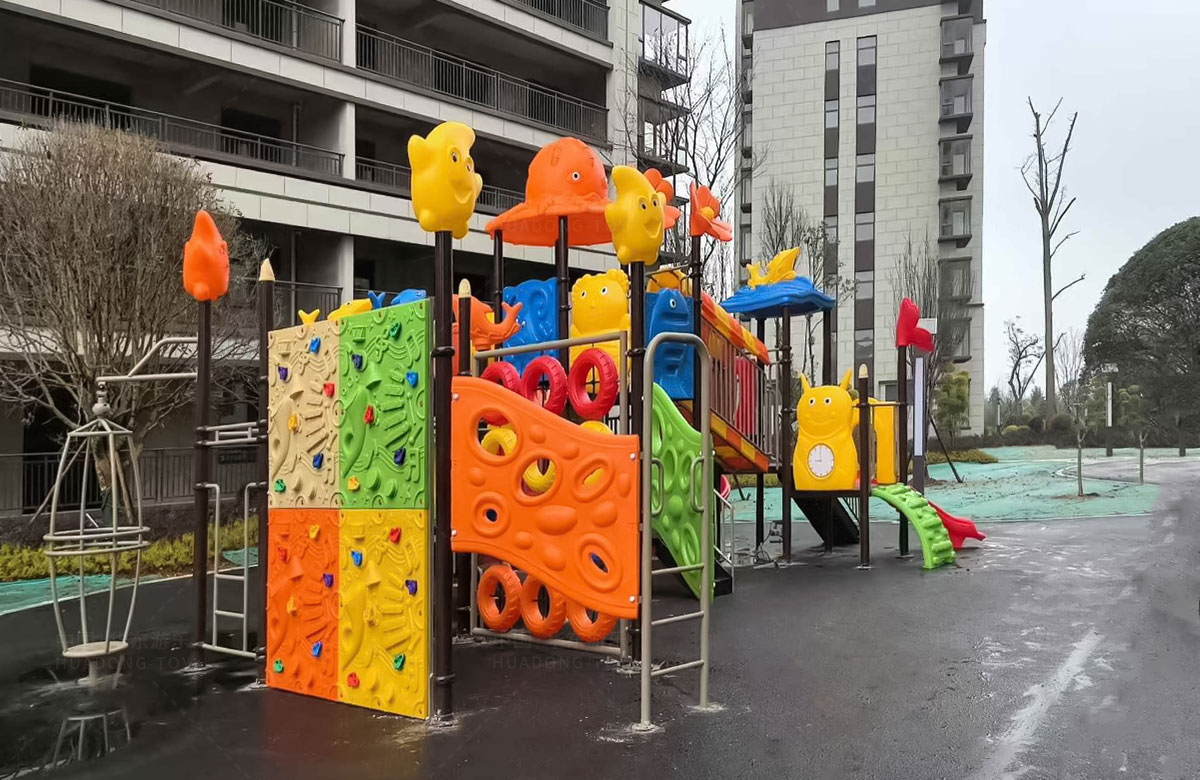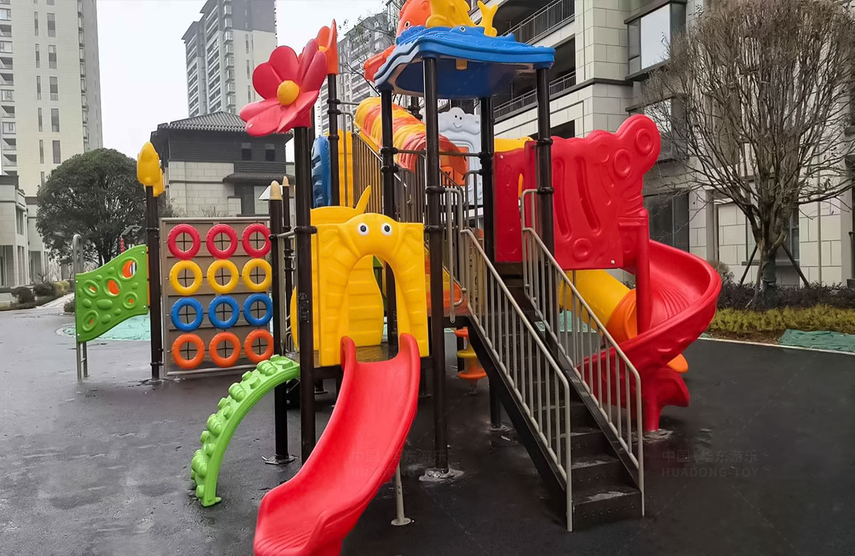 云南曲靖罗平县花海国际小区选用的是乐发游乐自主研发和设计的动物系列组合滑梯,该滑梯具有功能齐全、玩法多样,深受孩子们的喜爱,除此之外还是一款颜色艳丽、使用寿命长等特点。