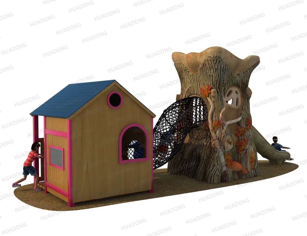 • 远古部落系列虽然名字带着“古”字,但是在设计细节处无不透露着艺术与创造性。当孩子在仿真树中探索、冒险、嬉戏游玩时,就像穿越到古老的神秘森林;粗略的树干包围着他们,头顶是高耸的茅草屋,触感真实的枯枝走廊,还有随处可见的小动物们…… 远古部落系列旨在打造区别于其他系列带给孩子们的新鲜感,让孩子们找设计者打造的神秘世界中获得冒险的乐趣。